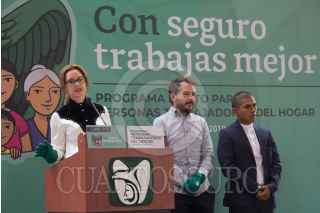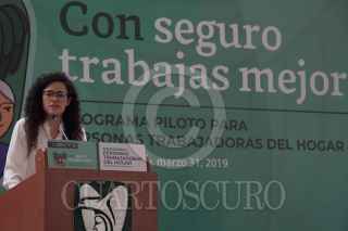 CIUDAD DE MÉXICO, 31MARZO2019.- Las trabajadores del hogar y Marcelina Bautista, secretaria General del Sindicato de trabajadores y trabajadoras del Hogar, al termino de la presentación del Programa Piloto, el cual consiste en la incorporación de las personas trabajadoras del hogar al IMSS. En conmemoración del Día Internacional de las Trabajadoras del Hogar. Se llevó a cabo en la explanada del Hospital de Especialidades del Centro Médico Nacional Siglo XXI. FOTO: GRACIELA LÓPEZ /CUARTOSCURO.COM