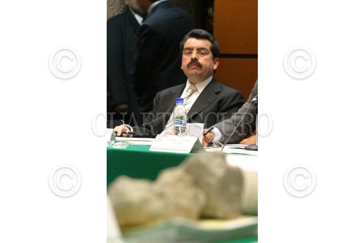 MEXICO, D.F. 13 DICIEMBRE 2004.- Diputados integrantes de la comisión de seguridad pública llevaron piedras a la comparecencia de Ramón Martín Huerta, secretario de Seguridad Pública Federal, en alución a su declaración de que no utilizaron helicopteros en el caso Tláhuac ya que ... ¨podrían ser derribados a pedradas...¨. FOTO: Sandra Perdomo/CUARTOSCURO.COM
