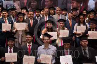 CIUDAD DE MÉXICO, 01ABRIL2019.- El secretario de Educación Pública, Esteban Moctezuma Barragán, encabezó la ceremonia de graduación "Becas Generación Bicentenario", las cuales son apoyadas por el SNTE, SEP, Monte de Piedad y Fundación Azteca, realizada en las instalaciones de la matriz de la casa de empeños. FOTO: MOISÉS PABLO /CUARTOSCURO.COM