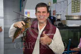CIUDAD DE MÉXICO, 01ABRIL2019.- Ricardo Sheffield Padilla, titular de la Procuraduría Federal del Consumidor (PROFECO), realizó un recorrido para la supervisión de pescados y mariscos, así como los precios y el peso correcto de los productos, en los puestos y locales del Mercado La Nueva Viga. En esta época la venta de de éstos productos incrementa por la cuaresma. En la imagen, una langosta bogavante viva. FOTO: GRACIELA LÓPEZ /CUARTOSCURO.COM