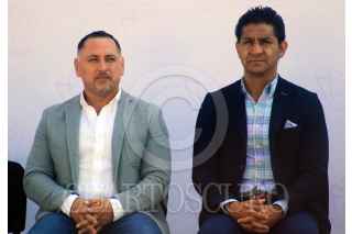 CUERNAVACA, MORELOS, 02ABRIL2019.- Los ex futbolistas Germán Villa e Isaac Terrazas durante un evento del Gobierno de Morelos. El gobernador Cuauhtémoc Blanco Bravo los integró a su gabinete. Desde octubre, Germán Villa Castañeda es director administrativo del Instituto del Deporte e Isaac Terrazas García director del Desarrollo del Deporte de la misma dependencia. FOTO: MARGARITO PÉREZ RETANA /CUARTOSCURO.COM