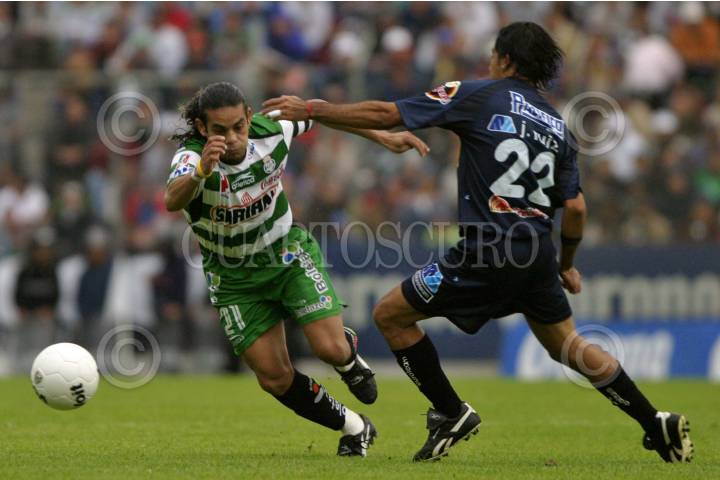 TORREON, COAHUILA, 23ENERO2005.- Héctor Altamirano, jugador de Santos se quita la barrida del jugador de Culiacán durante el juego de la jornada 2 en partido realizado en el estadio Corona, de esta ciudad. FOTO: Jorge López/CUARTOSCURO.COM