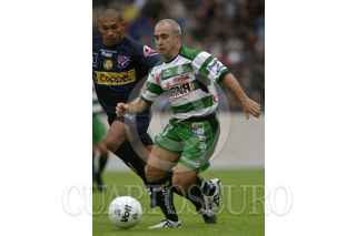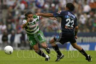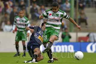 TORREON, COAHUILA, 23ENERO2005.- Héctor Altamirano, jugador de Santos se quita la barrida del jugador de Culiacán durante el juego de la jornada 2 en partido realizado en el estadio Corona, de esta ciudad. FOTO: Jorge López/CUARTOSCURO.COM