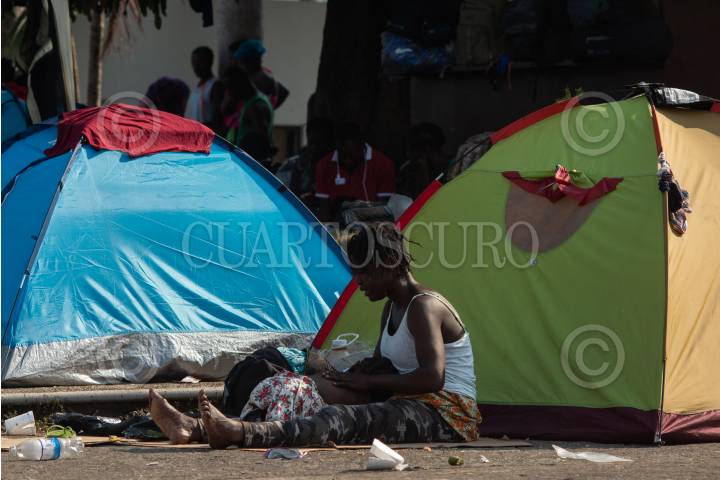 TAPACHULA, CHIAPAS, 03MARZO2019.- Comienzan los primeros trámites de la tarjeta de visa de ayuda por razones humanitarias para los migrantes provenientes del Congo, Nigeria, Guinea y otras provincias africanas, así como también persona de Argelia y Centroamérica, quienes mantenían un campamento en las inmediaciones de la Estación Migratoria Siglo XXI desde hace 23 días, hasta el día de hoy las autoridades les ofrecieron agua e instalarán baños móviles. FOTO: ISABEL MATEOS /CUARTOSCURO.COM