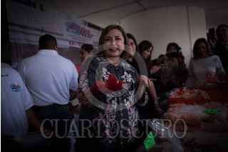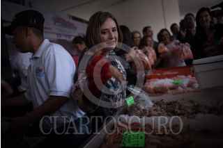 CIUDAD DE MÉXICO, 04ABRIL2019.- La senadora Xóchitl Gálvez, en una venta de mariscos dentro del recinto legislativo, donde locatarios de "La Nueva Viga" llegaron a ofrecer sus mariscos. FOTO: PEDRO ANZA /CUARTOSCURO.COM