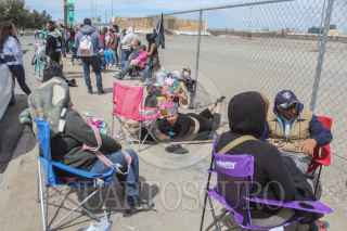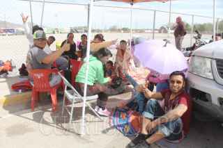 CIUDAD JUÁREZ, 06ABRIL2019.- La taquilla del estadio Olímpico Bénito Juárez, abrió a las 12:00 horas, sin embargo, los usuarios esperaron ya en la línea para comprar los boletos del próximo enfrentamiento del FC Juárez. Los primeros aficionados llegaron desde la 1:00 de la mañana y permanecieron listos para asegurar su lugar en el partido de los Bravos, en la final de la Copa Mx. Familias completas llegaron al Estadio, con sillas, alimentos y bebidas para hacer más ligera la espera. Tanto la afición de los Bravos como del América están a la espera de comprar sus entradas, y algunos aprovecharon para disputar una "cascarita" sobre la avenida. FOTO: NACHO RUÍZ /CUARTOSCURO.COM