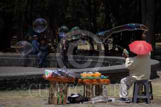CIUDAD DE MÉXICO, 07ABRIL2019.- Un comerciante vende burbujas de jabón en el Bosque de Chapultepec. FOTO: GRACIELA LÓPEZ /CUARTOSCURO.COM