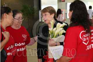 MONTERREY, NUEVO LEÓN, 07ABRIL2019.-La ex presidenta chilena Michelle Bachelet, arribó a la ciudad de Monterrey a un evento realizado por familiares de desaparecidos en el estado de Nuevo León. La alta comisionada para los Derechos Humanos de la ONU participó en el foro organizado por la Agrupación de Mujeres Organizadas por los Ejecutados, Secuestrados y Desaparecidos de Nuevo León (AMORES) perteneciente a CADHAC y por la asociación Fuerzas Unidas por Nuestros Desaparecidos en Nuevo León, A.C. (FUNDENL). FOTO: CUARTOSCURO.COM