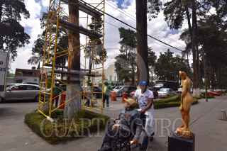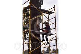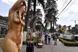 TOLUCA, ESTADO DE MÉXICO, 07ABRIL2019.- Los artistas Philip Zarkin, Jesús Nonato y Filiberto Jacales, participarán en el proyecto Tallando Vida, que consiste en convertir en esculturas los troncos de árboles que cumplieron su ciclo de vida en Paseo Colón, y para no derribarlos completamente, serán intervenidos por los artistas. FOTO: ARTEMIO GUERRA BAZ /CUARTOSCURO.COM