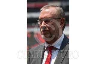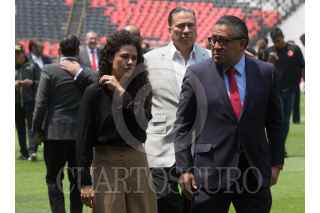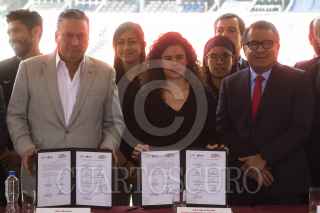 CIUDAD DE MÉXICO, 08ABRIL2019.- El conductor Toño de Valdés durante la firma de convenio por el Tiempo Libre y Entretenimiento de los Jóvenes Construyendo el Futuro, entre la Secretaría del Trabajo y Televisa, el encuentro se realizó en el Estadio Azteca. FOTO: MOISÉS PABLO /CUARTOSCURO.COM