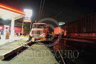 CIUDAD DE MÉXICO., 09ABRIL2019.- Accidente por choque entre una pipa de transporte de gasolina magna y un tráiler, al quedar sin frenos la pipa en Circuito Interior a la altura del Peñón de Los Baños. En dicho accidente tres vehículos más se vieron involucrados. FOTO: LUIS CARBAYO /CUARTOSCURO.COM