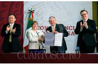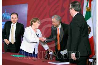 CIUDAD DE MÉXICO, 09ABRIL2019.- Andrés Manuel López Obrador, Presidente de México, y la Alta Comisionada de las Naciones Unidas para los Derechos Humanos, Michelle Bachelet, suscribieron hoy el Acuerdo para brindar Asesoría y Asistencia Técnica para la Formación y Operación en Materia de Derechos Humanos a la Guardia Nacional, Salón Tesorería de Palacio Nacional. FOTO: GOBIERNO DE LA REPÚBLICA /CUARTOSCURO.COM