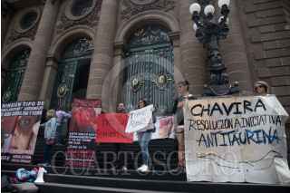 CIUDAD DE MÉXICO, 09ABRIL2019.- Un grupo de personas de distintas organizaciones de antitauromaquia, se manifestaron al exterior del Congreso de la Capital, para exigir que se prohiba la realización de corridas de toros ya que denuncian maltrato y afectan la vida e integridad física de los toros. FOTO: MARIO JASSO /CUARTOSCURO.COM