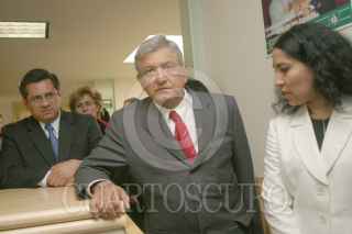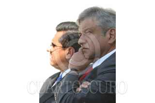 MEXICO D.F 25 ENERO 2005.- Joel Ortega, Secretario de Seguridad Pública del D.F, Andrés Manuel López Obrador, jefe de gobierno y Ruth Zavaleta durante la inauguración de la Coordinación Territorial de Seguridad Pública y Procuración de Justicia en la colonia Moctezuma. FOTO: Eunice Adorno/CUARTOSCURO.COM