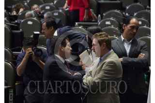 CIUDAD DE MÉXICO, 09ABRIL2019.- Marco Antonio Adame Castillo, vicepresidente de la Cámara de Diputados y Porfirio Muñoz Ledo, presidente de la Cámara de Diputados, durante la Sesión Ordinaria del Dictamen de la Comisión del Deporte con proyecto del decreto por el que se reforma el Artículo 94, Ley general de cultura física y del deporte. FOTO: GRACIELA LÓPEZ /CUARTOSCURO.COM