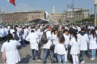 CIUDAD DE MÉXICO, 09ABRIL2019.- Médicos del Hospital General protestaron en el zócalo para exigirle a las autoridades federales un aumento salarial y mejoras laborales. FOTO: ARMANDO MONROY /CUARTOSCURO.COM