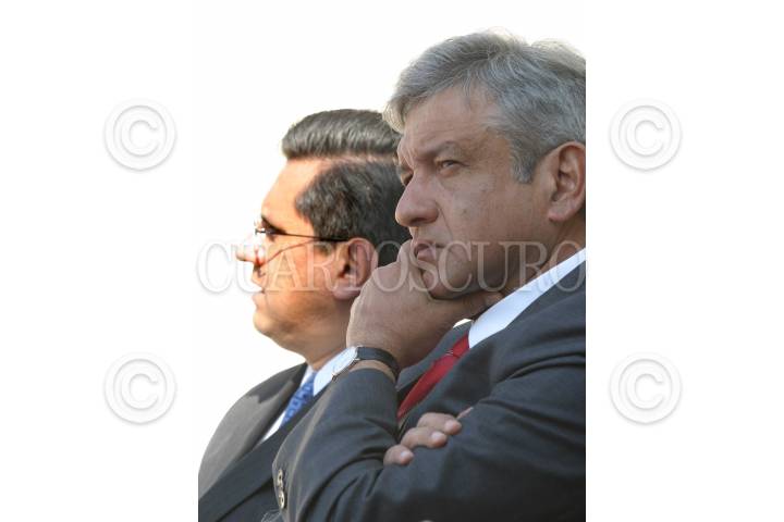 MEXICO D.F 25 ENERO 2005.- Joel Ortega, Secretario de Seguridad Pública del D.F, Andrés Manuel López Obrador, jefe de gobierno y Ruth Zavaleta durante la inauguración de la Coordinación Territorial de Seguridad Pública y Procuración de Justicia en la colonia Moctezuma. FOTO: Eunice Adorno/CUARTOSCURO.COM