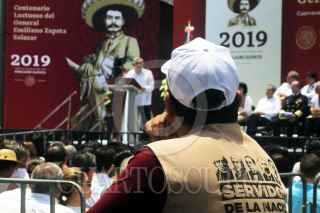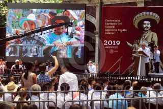 CUERNAVACA, MORELOS, 10ABRIL2019.- Andrés Manuel López Obrador, presidente de la Republica, acompañado del gobernador del estado, Cuauhtémoc Blanco Bravo, los gabinetes estatal y federal, así como diputados locales y federales, además de senadores conmemoro en esta ciudad el Centenario Luctuoso del General Emiliano Zapata Salazar. En la imagen un vendedor de libros ofrece su mercancía. FOTO: MARGARITO PÉREZ RETANA /CUARTOSCURO.COM