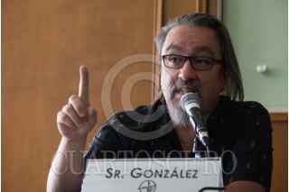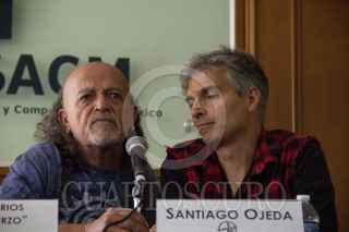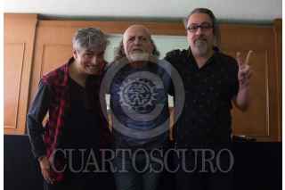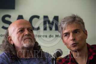 CIUDAD DE MÉXICO, 11ABRIL2019.- Santiago Ojeda, Paco Barrios "El Mastuerzo" y el Sr. González, integrantes de la banda Botellita de Jerez, durante la conferencia de prensa que ofrecieron para hablar de la separación de la banda, tras la muerte de Armando Vega Gil, se llevo a cabo en la Sociedad de escritores y compositores de México. FOTO: GRACIELA LÓPEZ /CUARTOSCURO.COM