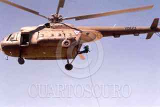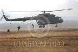 MEXICO D.F. 25ENERO2005.- Dos helicópteros de la Fuerza Aérea Mexicana se impactaron cuando regresaban de sobrevuelos de prácticas en la base militar de Santa Lucía. La policía estatal reportó que hay aproximadamente cinco soldados muertos. Las aeronaves MI de fabricación rusa estuvieron involucrados en los hechos. En la imágen un helicótero similar MI-17. FOTO: ARCHIVO/CUARTOSCURO.COM
