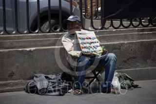 CIUDAD DE MÉXICO, 11ABRIL2019.- Un comerciante vende aretes hechos a mano, atrás de la Catedral Metropolitana. FOTO: GRACIELA LÓPEZ /CUARTOSCURO.COM