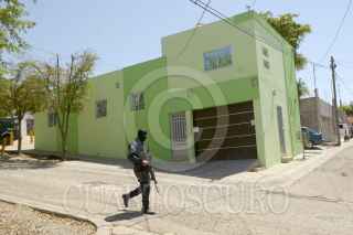 CULIACÁN, SINALOA, 11ABRIL2019.- Elementos de la Policía Estatal Preventiva y Fuerzas Armadas aseguraron en ésta ciudad al que se considera el primer narcolaboratorio en Sinaloa de droga sintética donde se procesaba fentanilo, informó la Secretaría de Seguridad Pública. El aseguramiento del laboratorio se registró luego de que los elementos fueron agredidos a balazos por narcotraficantes en el fraccionamiento Lomas de San Isidro. La información señala que fue por recorridos preventivos que policías estatales y militares realizaban entre las avenidas Parque Central y Bosque de Helechos y Abedules, durante la madrugada del miércoles 10 de abril, que observaron a dos personas que se encontraban a bordo de una motocicleta quienes efectuaron disparos a uno de los vehículos oficiales, los cuales impactaron a una unidad DNXII blindada, razón por la que no hubo personal herido. Posteriormente, se inició el seguimiento a las personas, mismas que ingresaron a un domicilio situado en la esquina de la calle de Los Bosques. Ante esto, los agentes adoptaron medidas de seguridad correspondientes, y solicitaron apoyo para localizarlos, ya que evadieron a las autoridades al salir de la vivienda por un acceso que daba hacia otra calle, dándose a la fuga. Explicó que los elementos estatales y de las fuerzas armadas se percataron que de la vivienda se despedían fuertes olores a químicos, y a simple vista, se apreciaban en el interior de la cochera recipientes plásticos. Por tal motivo procedieron a resguardar el sitio mientras se giraba la orden de cateo con la Fiscalía General de la República, quienes son los facultados para ingresar y dictaminar de manera oficial lo encontrado. FOTO: JUAN CARLOS CRUZ /CUARTOSCURO.COM