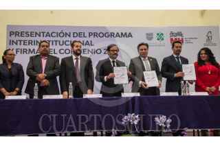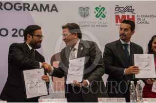 CIUDAD DE MÉXICO, 11ABRIL2019.- Víctor Hugo Romo de Vivar, alcalde de la Delegación Miguel Hidalgo, Mario Velázquez Miranda, Consejero Presidente del Instituto Electoral de la Ciudad de México y Bernardo Valle Monroy, Consejero Electoral y Presidente de la Comisión de Participación Ciudadana y Capacitación del Consejo General del IECM, encabezaron la firma de convenio de colaboración entre el IECM y la Alcaldía Miguel Hidalgo. FOTO: ANDREA MURCIA /CUARTOSCURO.COM