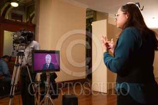 CIUDAD DE MÉXICO, 13ABRIL2019.- Cada mañana la comunidad con discapacidad auditiva en México se informa de los temas de política nacional a través del mensaje presidencial, gracias a la traducción en lenguaje de señas simultánea en las conferencias matutinas. Los más de 2 millones de sordos en el país son partícipes del referente de comunicación política del sexenio a través de este ejercicio de inclusión que día a día realizan un grupo de profesionales traductores, quienes buscan transmitir el mensaje del presidente con frases y énfasis especiales que él confiere a los temas. Es de destacarse que este ejercicio de comunicación inclusiva es continuo, en cada uno de los eventos del presidente Andrés Manuel López Obrador, a diferencia de otras administraciones que sólo se hacía en algunas ocasiones. La Lengua de Señas Mexicanas consiste en una serie de signos gestuales articulados con las manos y acompañados de expresiones faciales, mirada intencional y movimiento corporal, dotados de función lingüística, forma parte del patrimonio lingüístico de dicha comunidad y es tan rica y compleja en gramática y vocabulario como cualquier lengua oral. El artículo Primero de la Constitución Mexicana establece las condiciones en las que el Estado deberá promover, proteger y asegurar el pleno ejercicio de los derechos humanos y libertades fundamentales de las personas con discapacidad, asegurando su plena inclusión a la sociedad en un marco de respeto, igualdad y equiparación de oportunidades. FOTO: GOBIERNO DE LA REPÚBLICA /CUARTOSCURO.COM