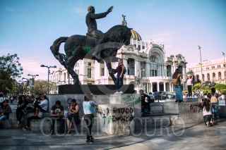 CIUDAD DE MÉXICO, 13ABRIL2019.- El Monumento a Madero, obra del artista Javier Marín, y que forma parte del paisaje entre la explanada del Palacio de Bellas Artes y la Alameda Central, continúa con las intervenciones que mujeres realizaron el pasado 8 de marzo en protesta por la apatía de las autoridades ante los feminicidios del país. FOTO: ANDREA MURCIA /CUARTOSCURO.COM