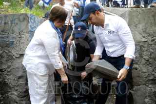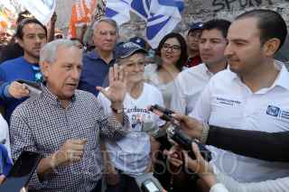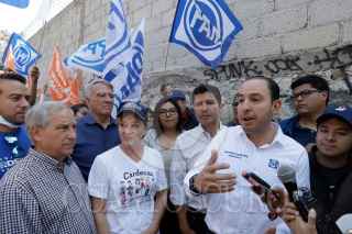 PUEBLA, PUEBLA, 14ABRIL2019.- Enrique Cárdenas, candidato común de los partidos PAN, PRD y MC a la gubernatura de Puebla, acompañado por Marko Cortés, presidente nacional del Partido Acción Nacional, realizaron una jornada de limpieza en inmediaciones de la colonia Reforma Sur. FOTO: MIREYA NOVO /CUARTOSCURO.COM