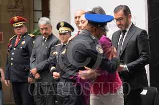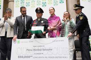 CIUDAD DE MÉXICO, 14ABRIL2019.- Jesús Orta Martínez, secretario de Seguridad Ciudadana; Claudia Sheinbaum, jefa de Gobierno y Rosa Icela Rodríguez, secretaria de Gobierno, entregaron el reconocimiento y distintivo a Salvador Pérez Méndez por ser el "Policía del Mes", en el Antiguo Palacio de Ayuntamiento. FOTO: GRACIELA LÓPEZ /CUARTOSCURO.COM