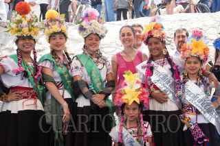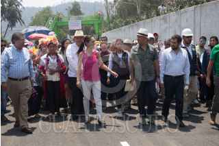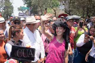 CIUDAD DE MÉXICO, 14ABRIL2019.- Claudia Sheinbaum, jefa de Gobierno recibió un rebozo durante la reapertura de la Carretera Xochimilco-Tulyehualco, al cruce con la calle Cocoxochitl, colonia Tejomulco el Bajo, vialidad que fue afectada en el sismo del 19 de septiembre del 2017. FOTO: GRACIELA LÓPEZ /CUARTOSCURO.COM