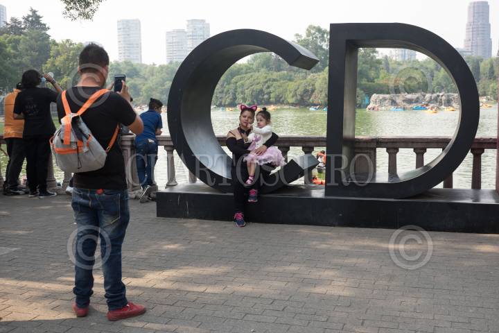 CIUDAD DE MÉXICO, 14ABRIL2019.- Como parte del inicio de las vacaciones de Semana Santa, una familia se toma fotos en las letras de la ciudad que se encuentran enfrente del lago del Bosque de Chapultepec. FOTO: GRACIELA LÓPEZ /CUARTOSCURO.COM