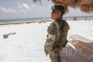 PUERTO MORELOS, QUINTANA ROO, 16ABRIL2019.- Elementos de policía militar de la entidad realizan recorridos en los alrededores de las playas mientras cientos de turistas disfrutan las vacaciones de semana santa. FOTO: ELIZABETH RUIZ /CUARTOSCURO.COM
