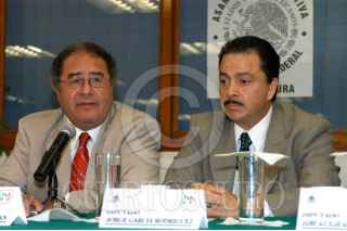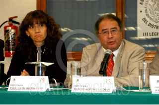 MEXICO, D.F. 26ENERO2005.- María Claudia Esqueda Llanes y Manuel Jiménez Guzman, diputados integrantes del grupo parlamentario del PRI, en conferencia de prensa se pronunciaron a favor de la candidatura del presidente nacional del tricolor, Roberto Madrazo Pintado para la presidencia de la República en 2006. FOTO: CUARTOSCURO.COM