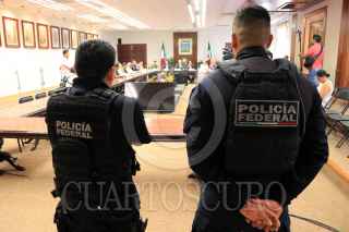 CUERNAVACA, MORELOS, 16ABRIL2019.- Dos policías federales observan la reunión matutina del gabinete de seguridad del gobierno del estado. FOTO: MARGARITO PÉREZ RETANA /CUARTOSCURO.COM