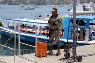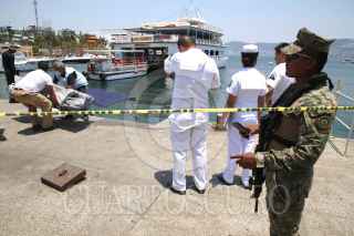 ACAPULCO, GUERRERO, 16ABRIL2019.- Agentes de la Marina rescataron uno de los cuerpos de los delincuentes abatidos durante el enfrentamiento entre fuerzas policíacas y civiles armados en la colonia La Mira. El cuerpo se encontraba entre los acantilados que dan al mar en esa colonia, por lo que fue difícil acceder para recuperarlo. FOTO: CARLOS ALBERTO CARBAJAL /CUARTOSCURO.COM
