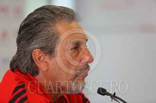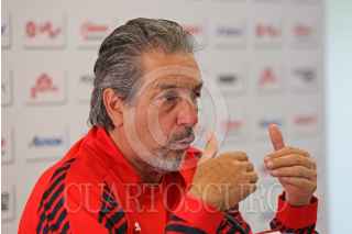 ZAPOPAN, JALISCO, 16ABRIL2019.- Tomás Boy Director Técnico de las Chivas de Guadalajara, durante la conferencia de Prensa que sostuvo con medios de comunicación esta mañana en la instalaciones de Verde Valle. FOTO: CUARTOSCURO.COM
