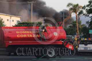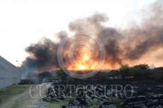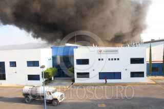 CORTÁZAR, GUANAJUATO, 16ABRIL2019.- El área de depósito de residuos de la fábrica planta de Hutchinson Pistones ubicada sobre la carretera Panamericana, registró un fuerte incendio el cual inició en la parte trasera de la planta, se salió de control y llegó hasta la nave central. Autoridades de Protección Civil y SEDENA, en sus últimos reportes indicaron la ausencia de personas lesionadas. FOTO: ALEJANDRO ROJAS /CUARTOSCURO.COM