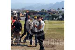 YAUTEPEC, MORELOS, 17ABRIL2019.- Will Smith saluda a la gente que se acercó al campo de futbol del poblado de Oacalco, donde aterrizo el helicóptero que lo traslada. El actor estadunidense filma locaciones para la película Bad Boys for Life en la ex hacienda de Oacalco. FOTO: CORTESIA /CUARTOSCURO.COM