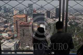 CIUDAD DE MÉXICO, 17ABRIL2019.- Continúa la contingencia ambiental Fase 1 activada desde el día de ayer, se prevé que hasta las 6 de la tarde se de a conocer si continúa la misma, desde el mirador de la Torre Latinoamericana se pudo observar una espesa bruma grisácea que cubre todo el Valle de México. FOTO: MOISÉS PABLO /CUARTOSCURO.COM