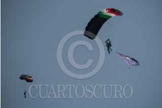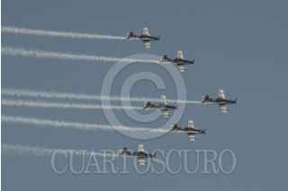 ZUMPANGO, ESTADO DE MÉXICO, 17ABRIL2019.- Se realizó un ensayo de las actividades que comprenderán el espectáculo aereo que formara parte de la celebración de la tercera edición de la Feria Aeroespacial México (FAMEX 2019). FOTO: MARIO JASSO /CUARTOSCURO.COM