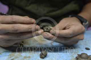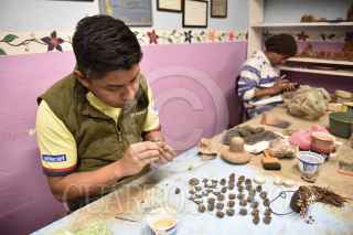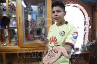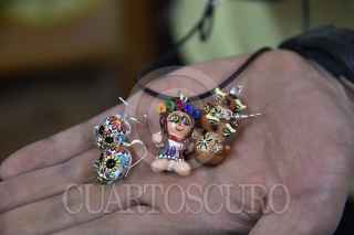 METEPEC, ESTADO DE MÉXICO, 17ABRIL2019.- Dylán Hernández Vázquez a sus 23 años creó una línea de joyería en miniatura de barro, la cual elabora en el taller familiar Arte en Miniatura Juan Hernández Arzaluz, su bisabuelo, abuelo, padre y hermanos se han dedicado a la elaboración de artesanías de barro, el aprendió desde pequeño este oficio y con su línea de joyería ha podido pagar sus estudios de Ingeniería Industrial, figuras como el árbol de la vida, mariposas, catrinas, muñecas, soles, jarros, han sido las figuras que ha convertido en pulseras, aretes y collares. FOTO: ARTEMIO GUERRA BAZ /CUARTOSCURO.COM