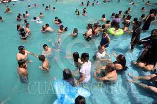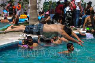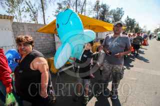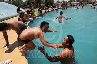 NEZAHUALCÓYOTL, ESTADO DE MÉXICO, 18ABRIL2019.- Miles de personas acudieron al Parque Recreativo Xochiaca el cual fue inaugurado el día de ayer y la entrada es gratuita, algunas personas se formaron desde las 5:00am para poder ser de los primeros en entrar a este parque acuático ubicado a unos metros del Tiradero del Bordo de Xochiaca. FOTO: MOISÉS PABLO /CUARTOSURO.COM