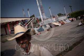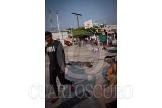 ESCUINTLA, CHIAPAS, 19ABRIL2019.- La caravana de cubanos que fue interceptada el día de antier por agentes del Instituto Nacional de Migración en conjunto con elementos de la Policía Federal cuando avanzaban a la altura del Centro de Atención Integral de Tránsito Fronterizo Huixtla, y que se unió el día de ayer a la caravana de Centroamericanos que se encontraba en Huixtla, se encuentra el día de hoy en el parque central de este municipio organizando la continuación de su avance al norte del país. FOTO: PEDRO ANZA /CUARTOSCURO.COM
