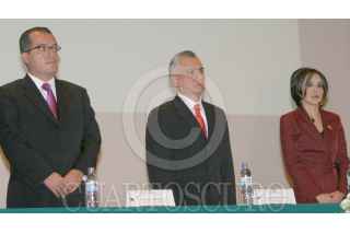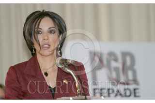 MEXICO D.F 27 ENERO 2005.- Rafael Macedo de la Concha, procurador de Justicia de la Nación, platica con María de los Angeles Fromow, titular de la Fiscalía Especializada para la Atención de Delitos Electorales durante su informe anual de actividades del 2004. FOTO: Eunice Adorno/CUARTOSCURO.COM