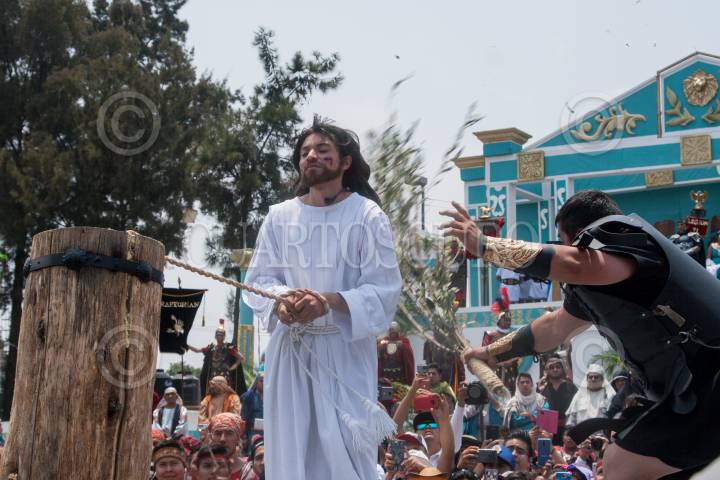 CIUDAD DE MÉXICO, 19ABRIL2019.- Fue realizada la 176 representación de la Pasión de Cristo en Iztapalapa. Con las calles repletas de espectadores, habitantes de la alcaldía teatralizaron el juicio y trayecto de Jesús de Nazaret a la cruz. FOTO: GALO CAÑAS /CUARTOSCURO.COM