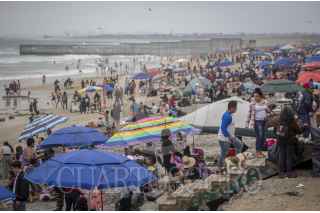 TIJUANA, BAJA CALIFORNIA, 19ABRIL2019.- Miles de personas acudieron a pasar el Viernes Santo en Playas de Tijuana, a pesar del clima frío que se registró a lo largo del día. Se espera una afluencia de 34 mil personas en los 2.5 kilómetros de playa durante el presente fin de semana. FOTO: OMAR MARTÍNEZ /CUARTOSCURO.COM