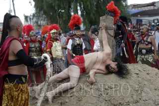 PUEBLA, PUEBLA, 19ABRIL2019.- Representación de la Pasión de Cristo en la Junta Auxiliar Romero Vargas como parte de la Celebración de Semana Santa. FOTO: MIREYA NOVO /CUARTOSCURO.COM