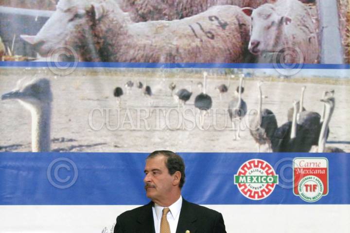 México, D.F., 27ENERO2005.- Vicente Fox Quesada, presidente de la República y Javier Usabiaga, secretario de la SAGARPA, durante la visita del primer mandatario a la Secretaría de Agricultura, Ganadería, Desarrollo Rural, Pesca y Alimentación. FOTO: Moisés Pablo/CUARTOSCURO.COM